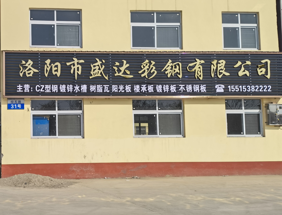 洛陽市盛達彩鋼有限公司主要從事經營: 12米剪版折彎鍍鋅水槽天鉤, 彩涂板、鍍鋅板、彩鋼復合板、覆膜彩鋼瓦、彩鋼瓦 C型鋼 鍍鋅新型鋼結構的設計、加工、安裝 。產品主要用于大、中、小型廠房、樓房加層、超市、倉庫、汽車展廳、活動房、農貿市場等工程。